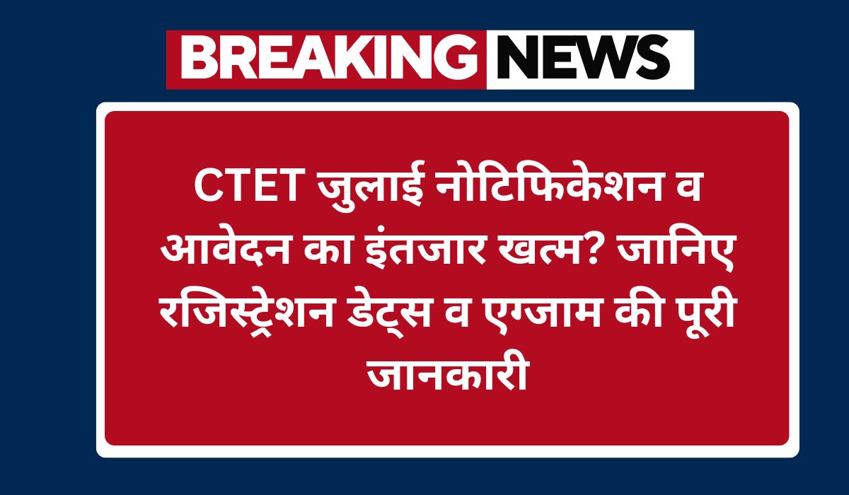 CTET Notification 2025: सीटेट जुलाई नोटिफिकेशन व आवेदन का इंतजार खत्म? जानिए रजिस्ट्रेशन डेट्स व एग्जाम की पूरी जानकारी